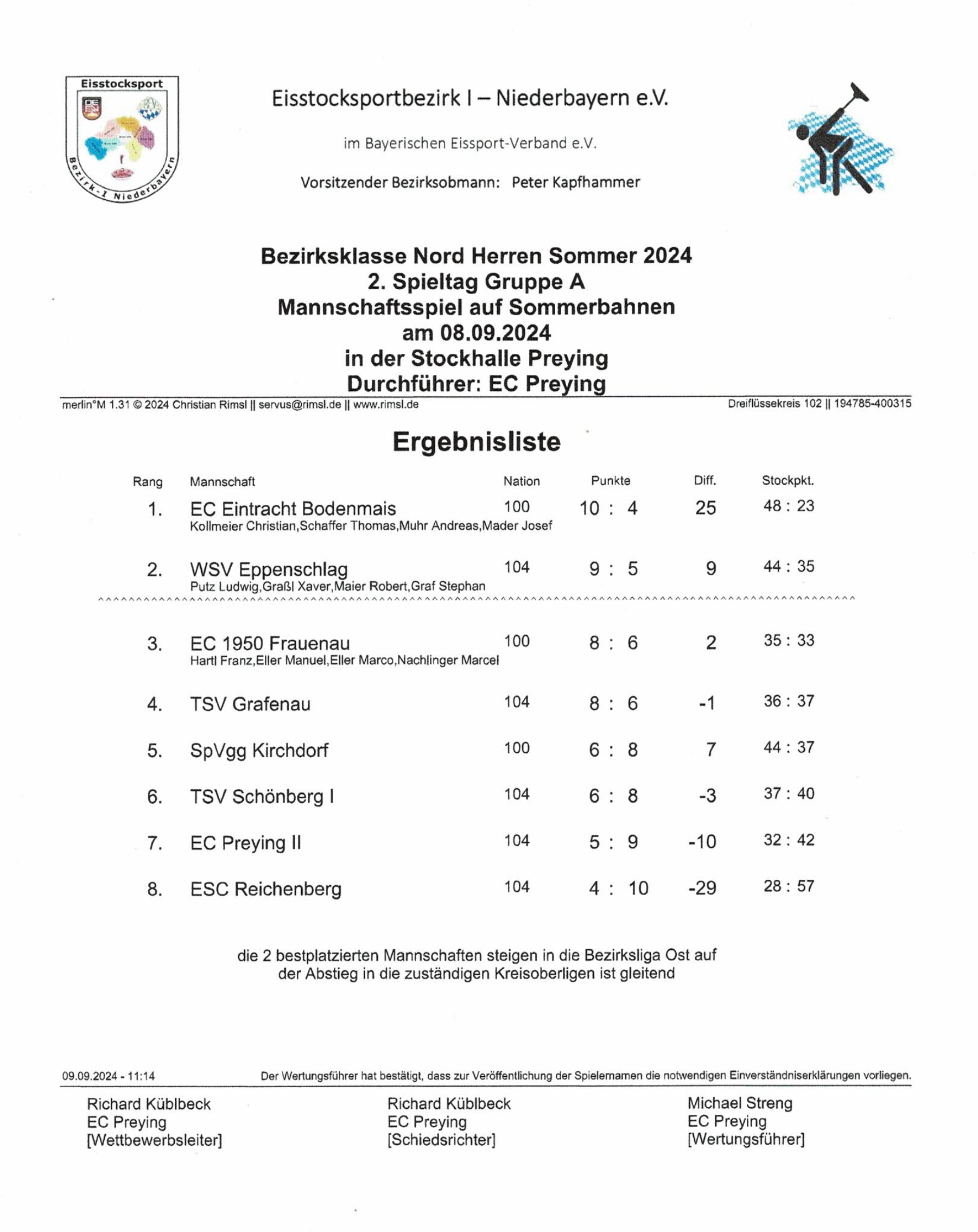 2.Platz bei Bezirksklasse Nord Herren Sommer 2024