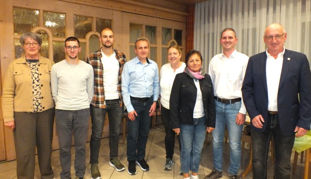 Von links Fahnenmutter Erna Schrönghamer, Marcel Fiedler, Thomas Maier, Elmar und Carola Braunreuther, Eva Schneider, Norbert Schiller, 1.Vors.Manfred Schneider (nicht auf dem Bild Florian Schneider).
